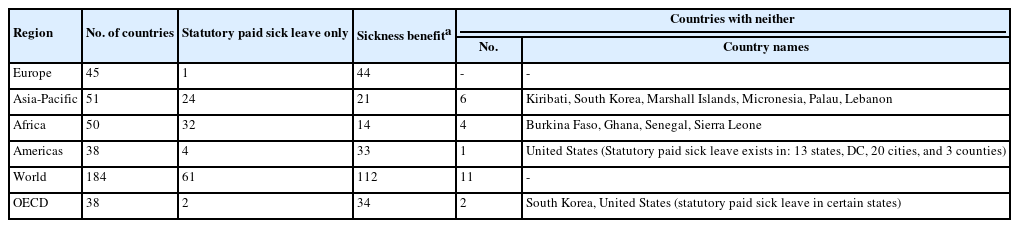 Table 1.Global and OECD overview of paid sick leave and sickness benefit systems (184 countries, including 38 OECD members)