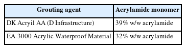 Table 1Acrylamide concentrates from grouting agents that were used by the patients