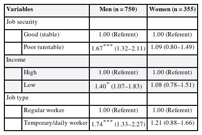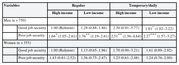 13 Thus, we included job insecurity and employment type as risk factors to analyze the interaction effect of variables.