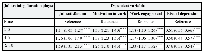 Keywords: Depression; Job training; Job satisfaction; Mediation analysis; Work motivation; Work engagement